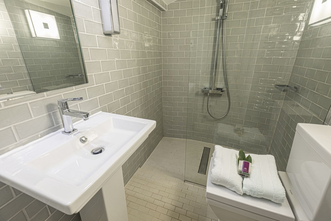 • Modern bathroom with shower